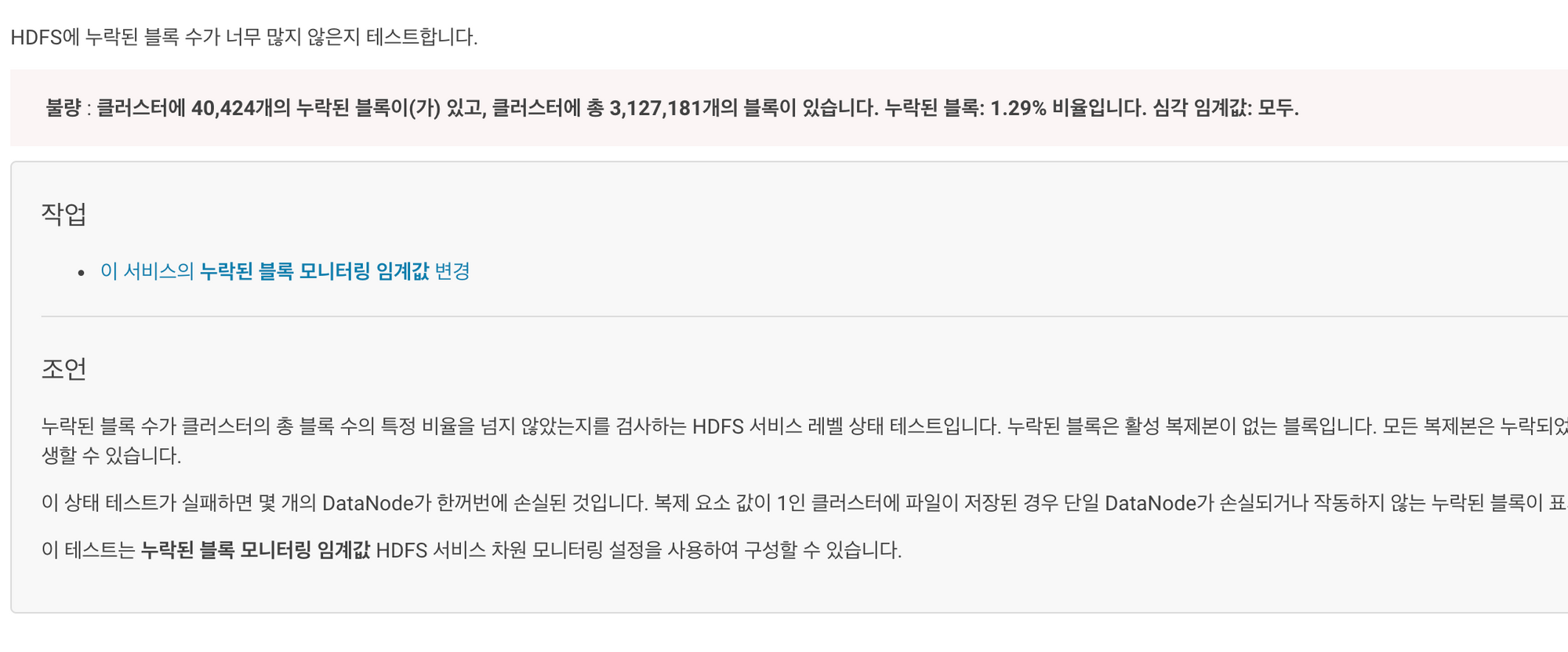 CDH 호스트 추가하다 HDFS에 Missing block error가 발생함